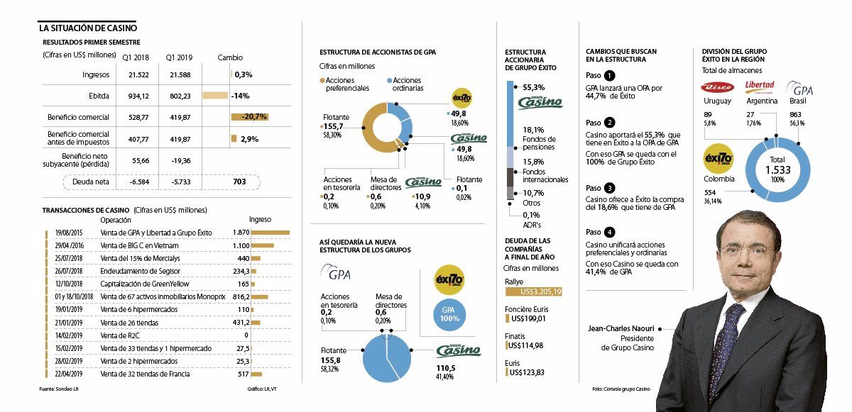 Una vez esto se concrete, Casino ofrecerá a Éxito la compra de ese 18,6% que tiene en GPA. De concretarse, Casino unificará acciones preferenciales y ordinarias, con lo que la matriz francesa quedaría con 41,4% de la propiedad.
