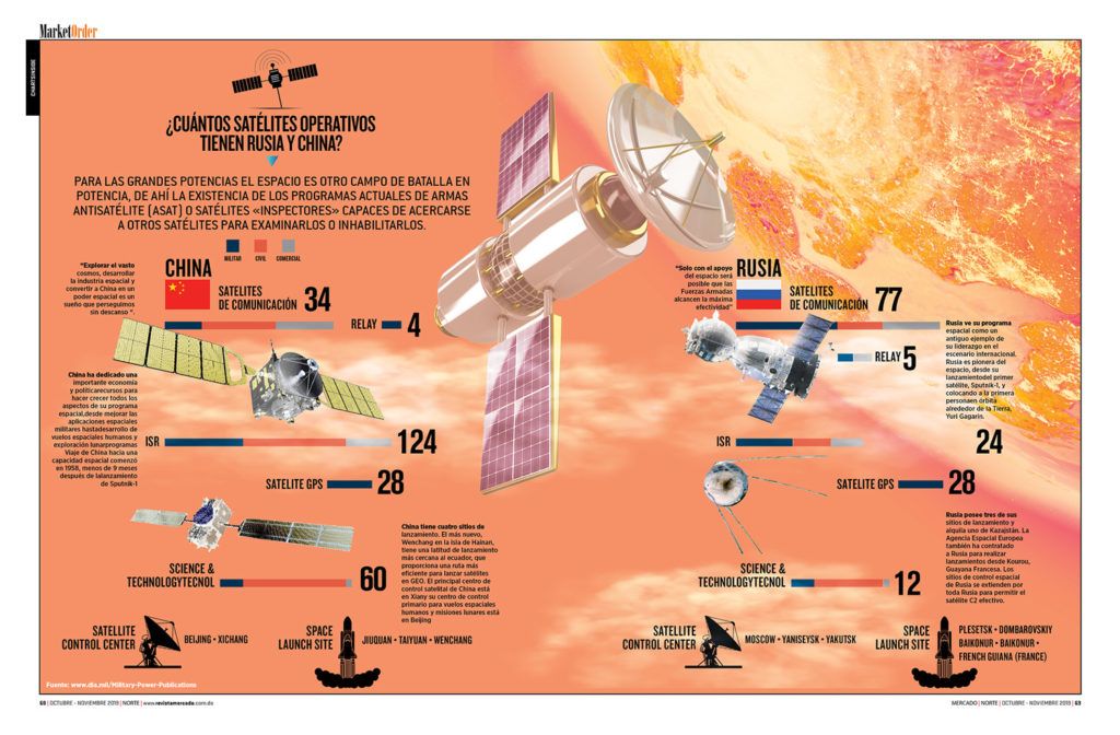 El gigante asiático cuenta con 34 satélites de comunicación, cuatro relay, 124 ISR, 28 de GPS, 60 science &technologytecnol.