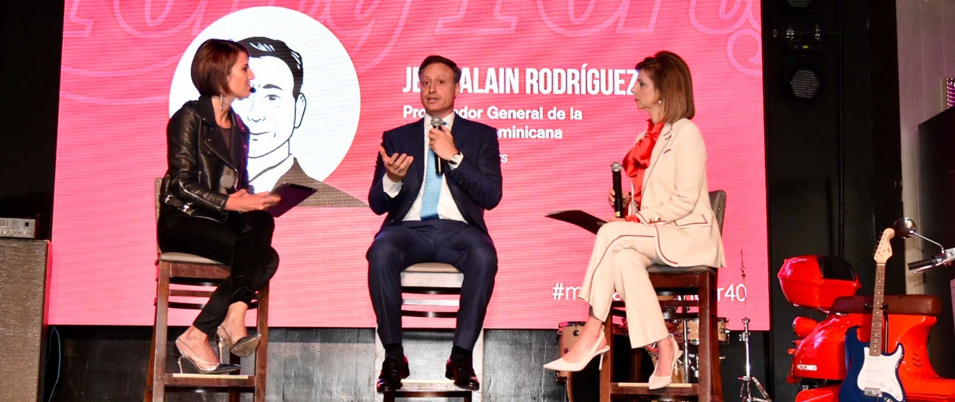 Jean Alain Rodríguez, procurador general de la República, se encarga de dar apertura al evento insignia de Revista Mercado, Forty under Forty, al ser entrevistado por nuestra directora de Mercado Exchange, Helena Sáenz, junto a doña Patricia de Moya.