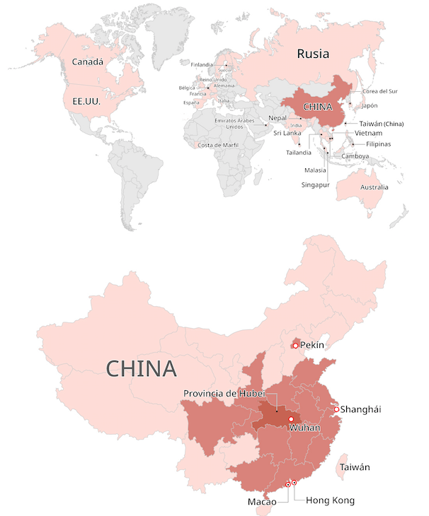 Los casos de contagio confirmados en otras naciones aparte de China son:
