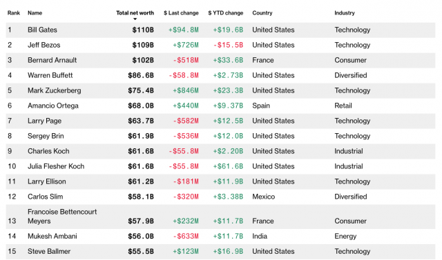 Según el Bloomberg Billionairies Index, Gate tienen un patrimonio neto de US$110 mil millones. Mientras que Bezos le sigue con US$109 mil millones, esto representa una diferencia de mil millones de dólares.
