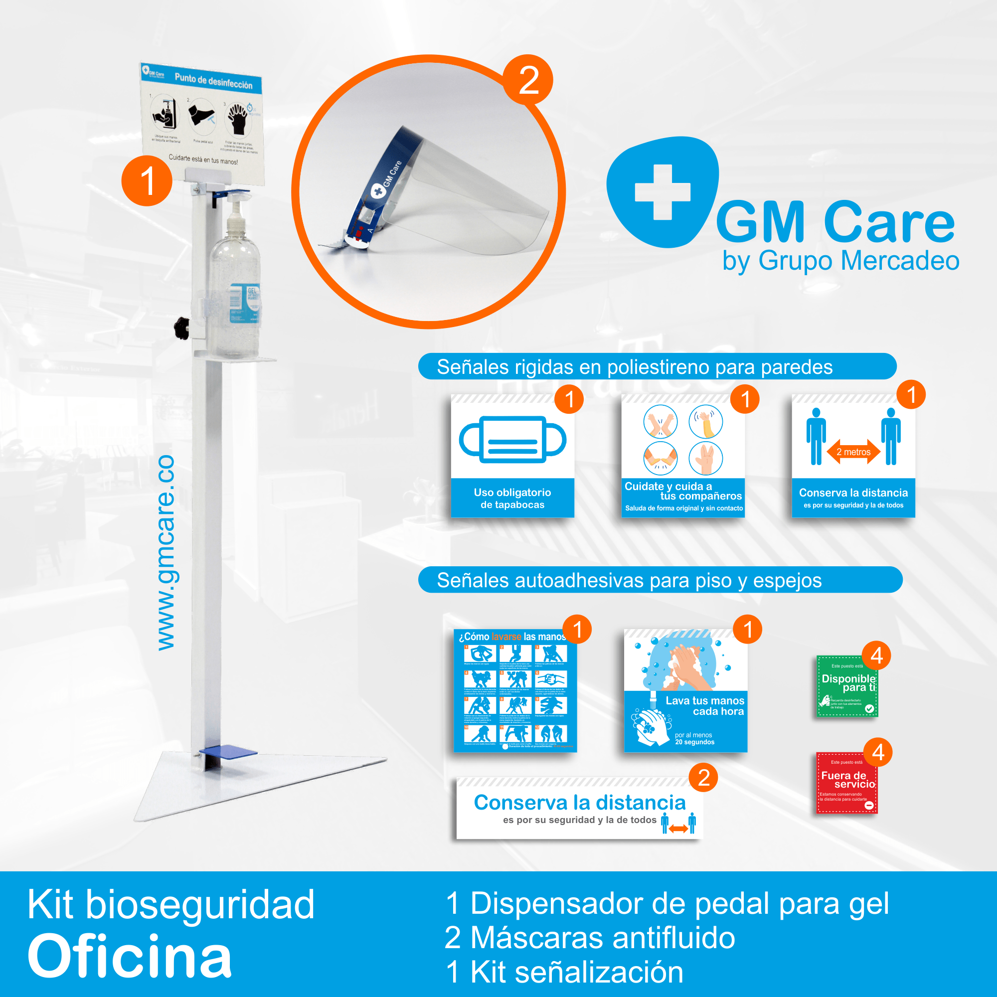 Kit de cumplimiento de protocolos de bioseguridad, el kit contiene elementos básicos para implementación del protocolo de bioseguridad exigido por el gobierno para la apertura económica.