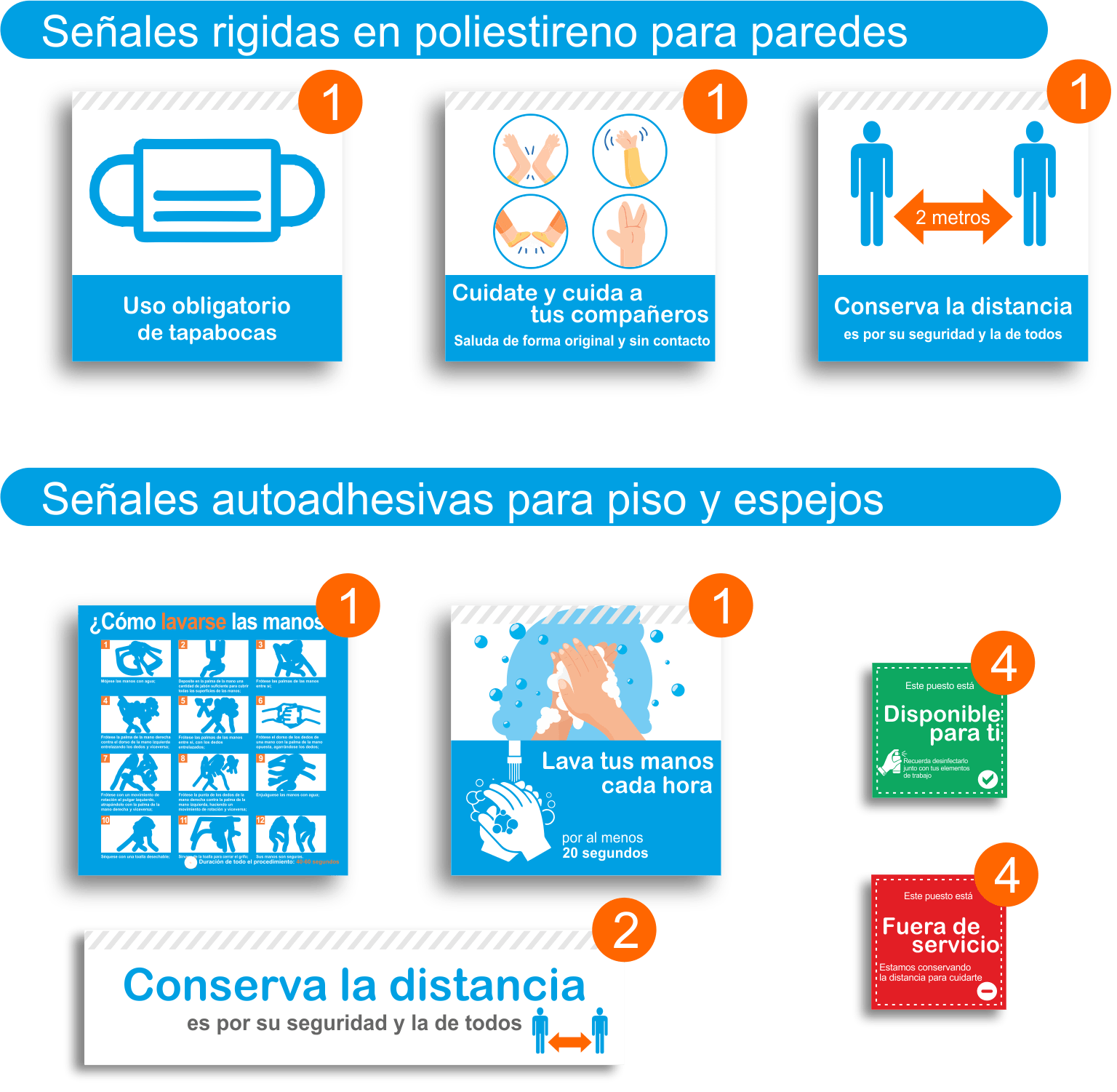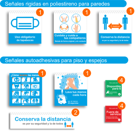 - 1 Señal rígida uso tapabocas (25cm x 25cm)
