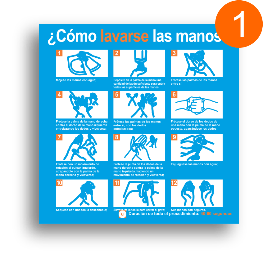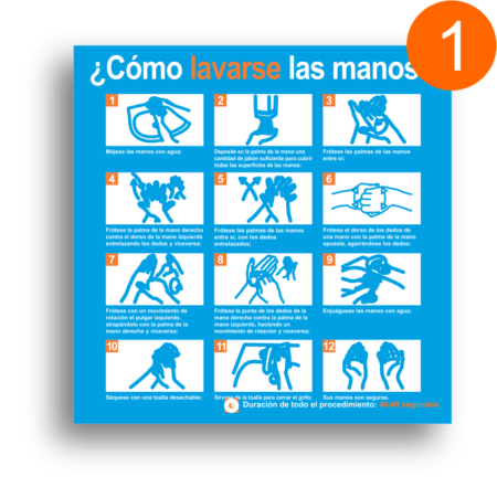 • 1 Adhesivo protocolo de lavado de manos (25cm x 25cm)
