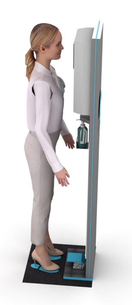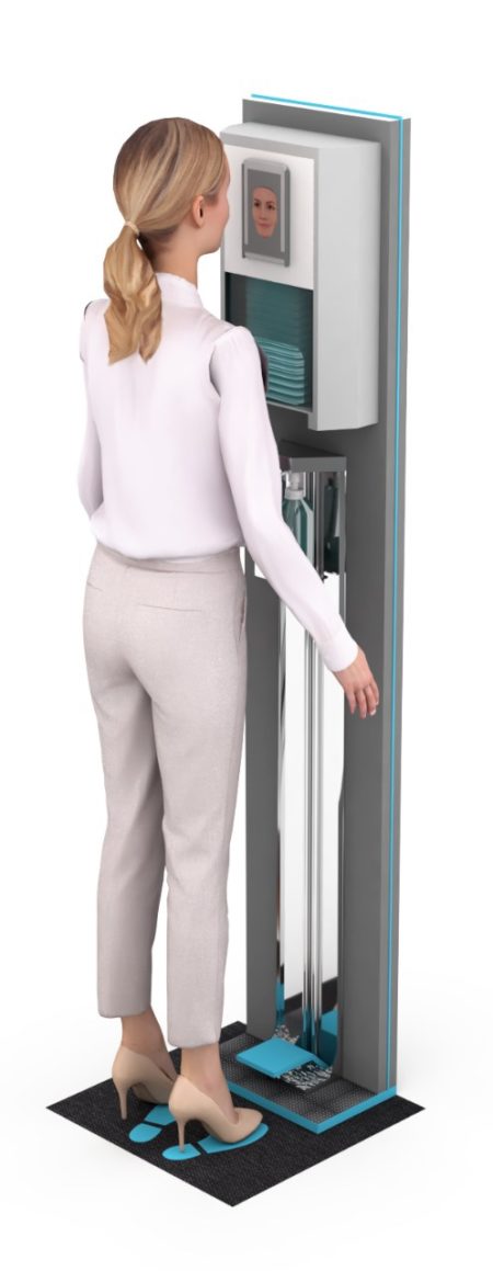 - El sistema está diseñado para desinfectar rápidamente la manos y controlar la temperatura del cuerpo. Un proceso que toma aproximadamente 10 segundos.