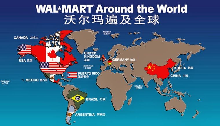 El negocio internacional de Walmart representa aproximadamente una cuarta parte de sus ingresos anuales (tiene más de 6.000 tiendas fuera de los EE. UU), Pero fuera, las cosas no han ido tan bien últimamente debido a las fluctuaciones en el cambio de monedas, enfriamiento de la economía brasileña y una batalla brutal de precios en UK (cuando se quejan de que en España hay guerra de precios… cojan un avión, vayan a UK, entren en los supermercados y se darán cuenta que aquello sí que es una guerra de precios, muy influida por la subida vertiginosa de los supermercados alemanes). Las ventas internacionales ha caído casi 20 mil millones de dólares en algo más de dos años . La sombra de Alemania y Corea del Sur aún pasea por los pasillos de las oficinas centrales de Walmart, dos países donde tuvo que salir con la cabeza baja en 2006.